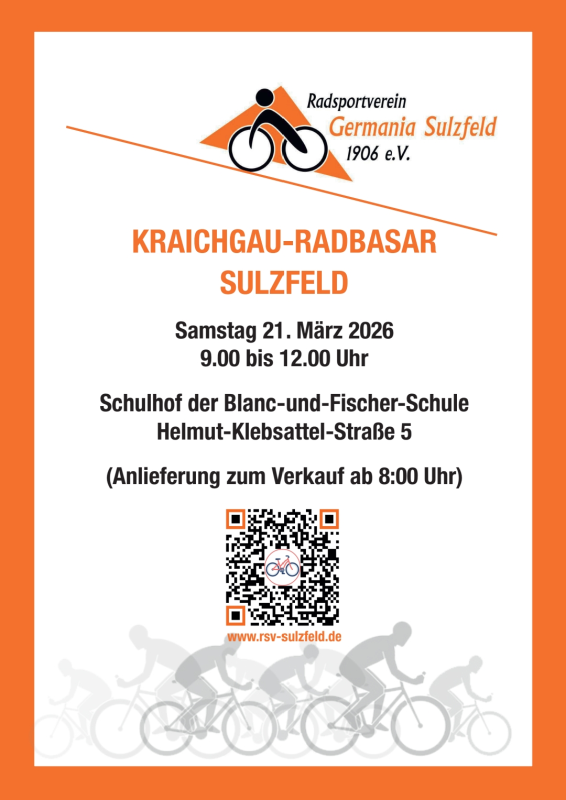 *** 35. Kraichgau Radbasar am 21.März 2026 9:00 - 12:00 Uhr auf dem Schulhof der Blanc-und Fischer Schule. Radabgabe ab 8:00 Uhr ***